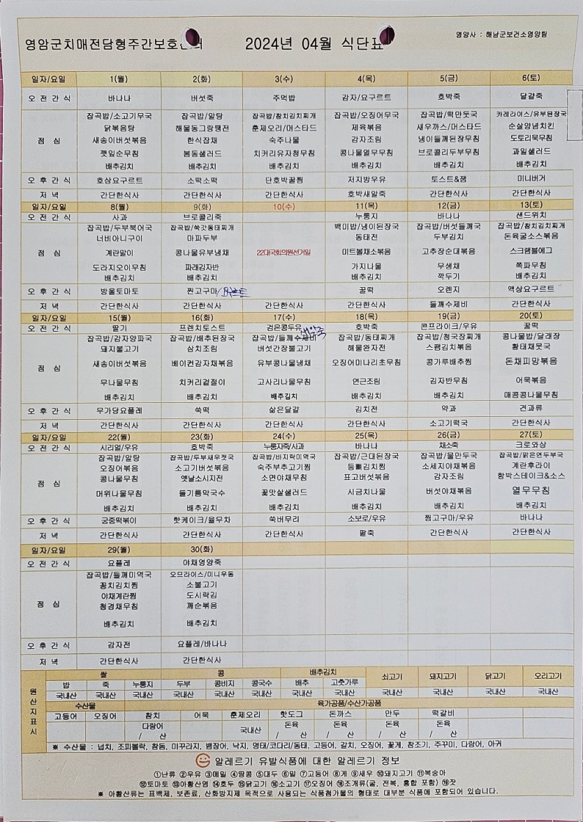 2024년 04월 식단표 페이지 정보 작성자 관리자 댓글 0건 조회 137회 작성일 25-06-18 11:00 목록 본문 2024년 04월 식단표입니다. 이전글2024년 05월 식단표 25.06.18 다음글2024년 03월 식단표 25.06.18 댓글 0 댓글목록 등록된 댓글이 없습니다.