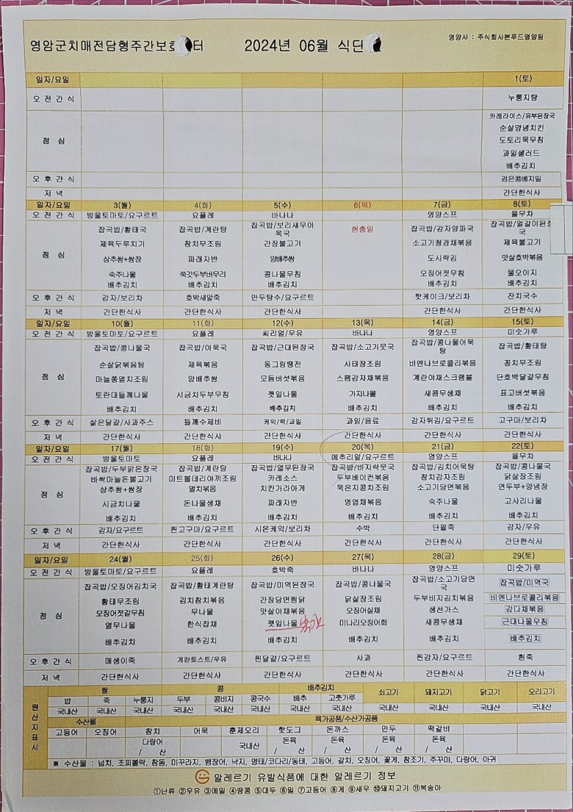 2024년 06월 식단표 페이지 정보 작성자 관리자 댓글 0건 조회 147회 작성일 25-06-18 11:00 목록 본문 2024년 06월 식단표입니다. 이전글2024년 07월 식단표 25.06.18 다음글2024년 05월 식단표 25.06.18 댓글 0 댓글목록 등록된 댓글이 없습니다.
