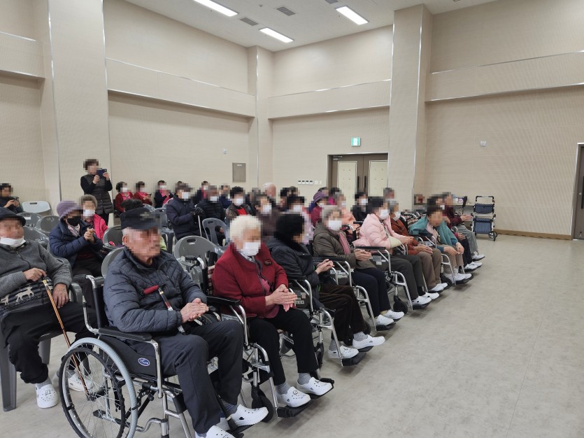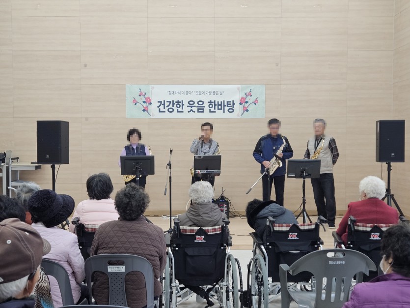 색소폰동호회 분들이 오셔서 어르신들을 위해 공연을 해주셨습니다. 어르신들도 함께 나오셔서 노래도 부르시고 즐거운 색소폰 공연도 관람하시고
