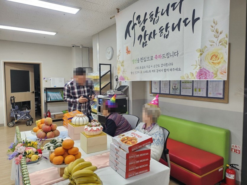 다들 즐거워 하시고 진심으로 축하해 주셨습니다. 생신자 어르신은 감격에 겨우셔서 눈물을 흘리시기도 하시며