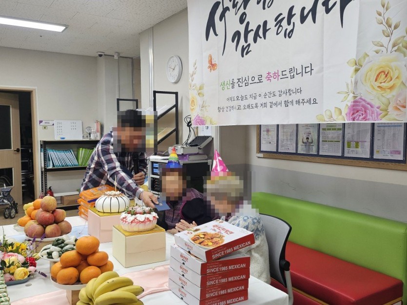 다들 즐거워 하시고 진심으로 축하해 주셨습니다. 생신자 어르신은 감격에 겨우셔서 눈물을 흘리시기도 하시며