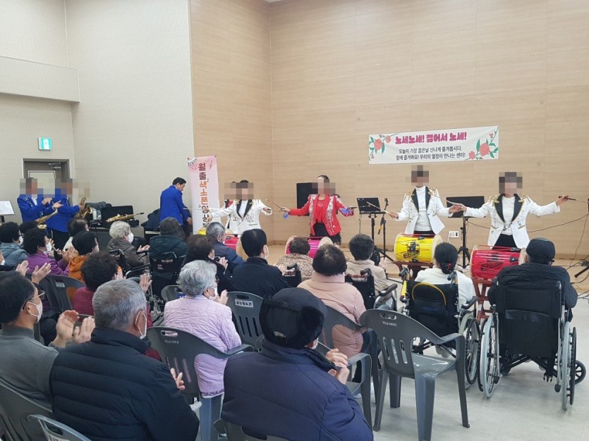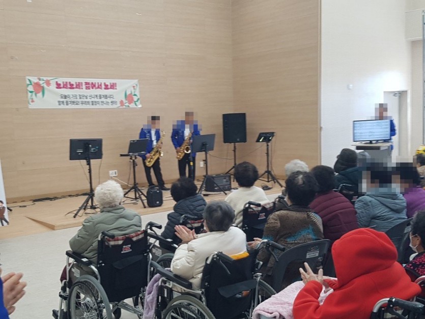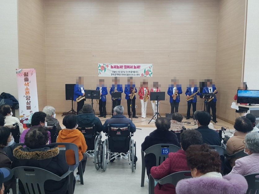 월출색소폰 소속 봉사공연 오셔서 색소폰,고고장구,트로트,우쿠렐레 공연을 해주셨습니다. 어르신들도 굉장히 좋아하시며 즐겁게 관람하셨습니다.